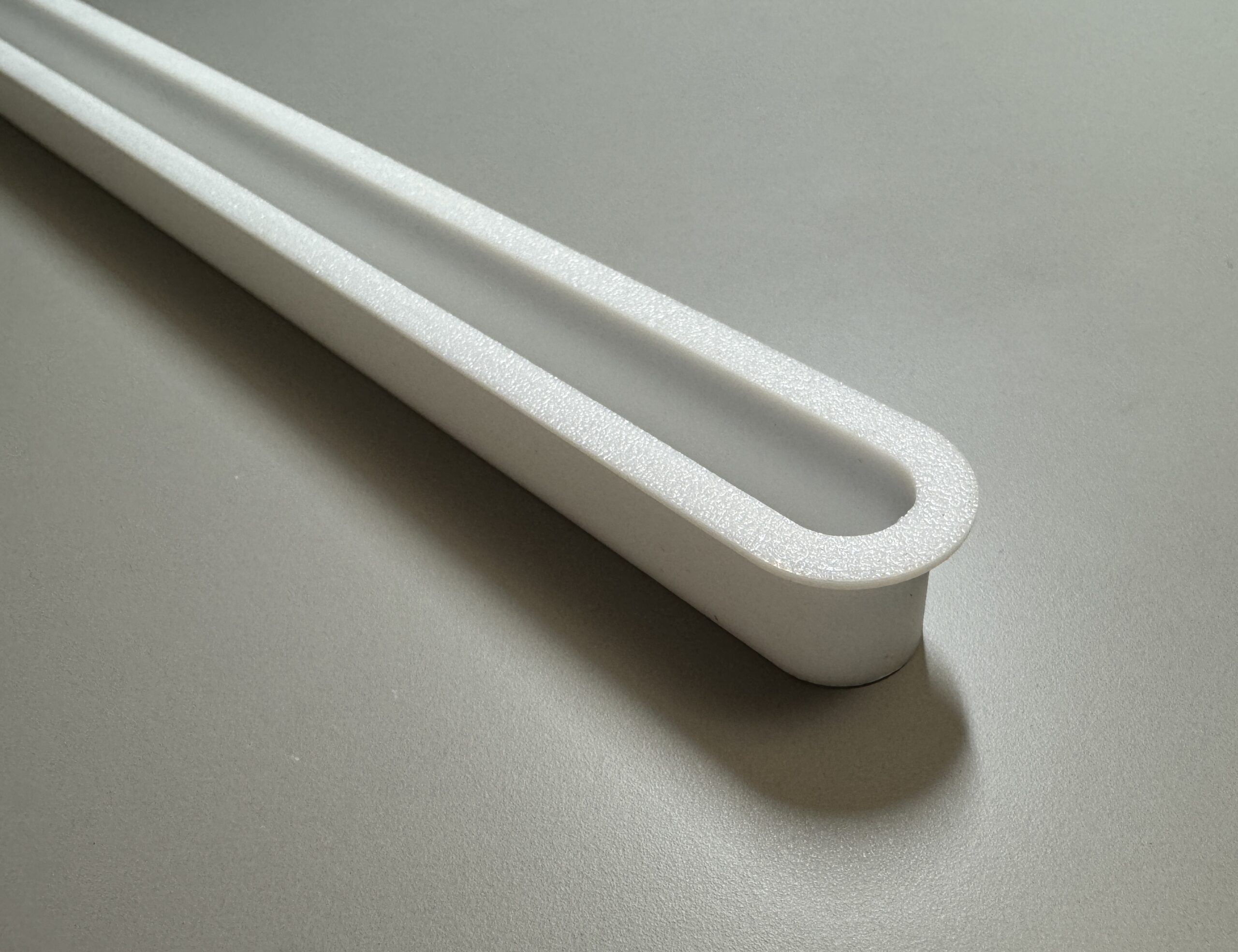 Produkt zaprojektowany pod frez 16 mm, co gwarantuje szybki i precyzyjny montaż. Smukła forma zapewnia dobrą cyrkulację powietrza bez zaburzania wyglądu frontów i korpusów.