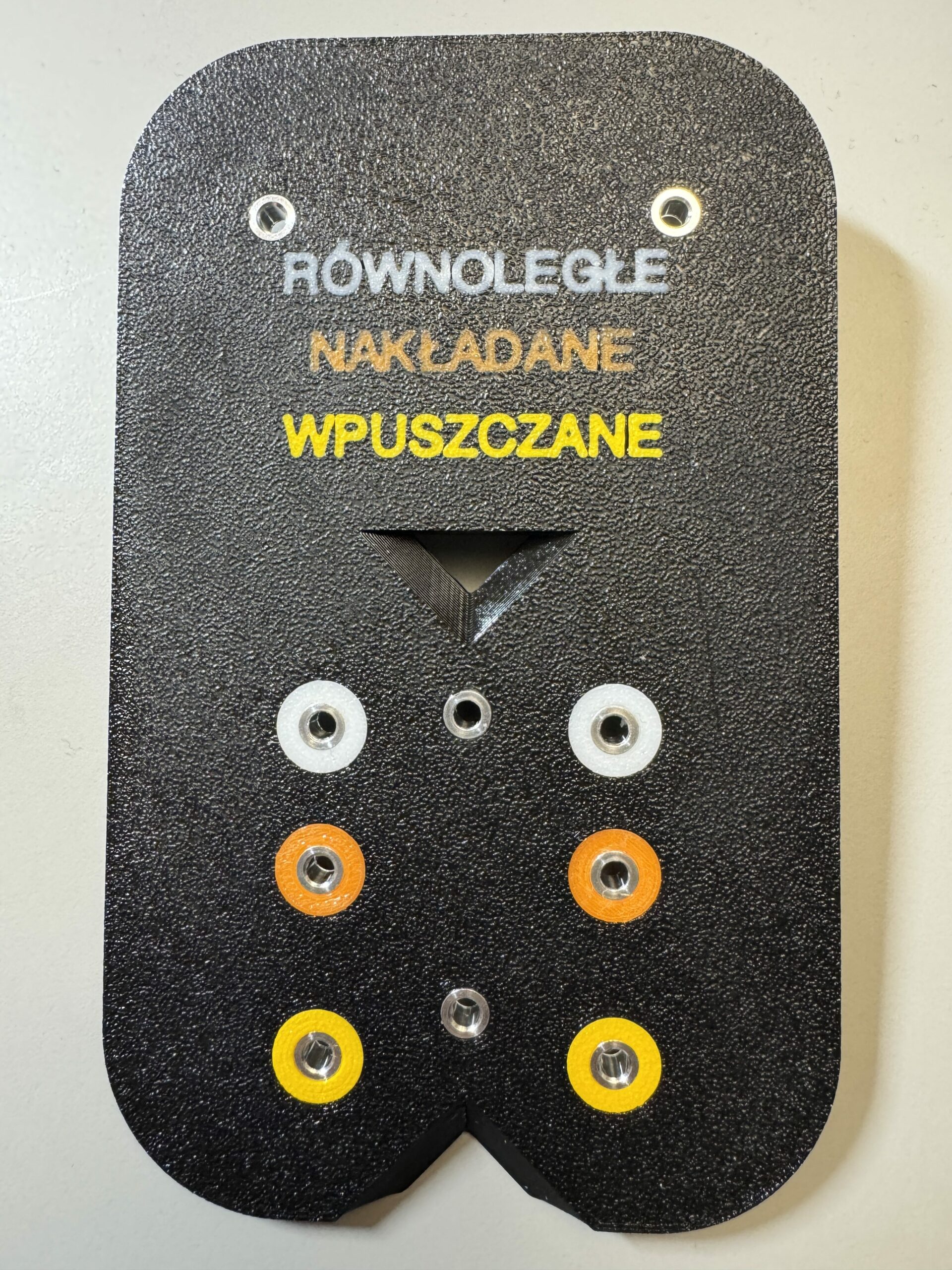 Profesjonalny szablon montażowy do wiercenia otworów pod prowadniki zawiasów. Umożliwia szybkie i precyzyjne ustawienie mocowania względem otworu puszki Ø35 mm — bez linijki, miary i ryzyka błędu.
